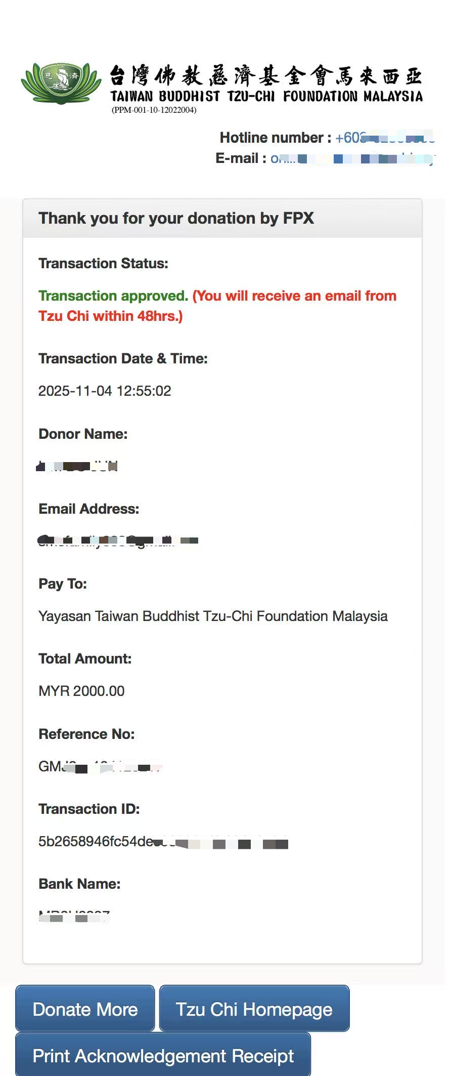 | 04/11/2025 | Yayasan Taiwan Buddhist Tzu-Chi | MYR 2,000.00 | more |